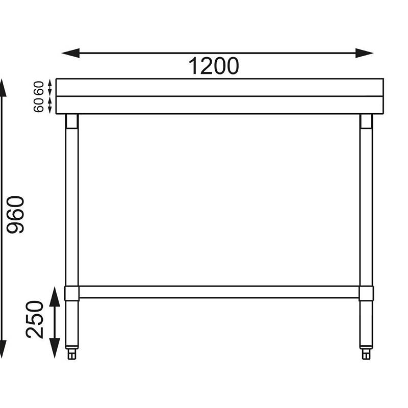 Vogue Arbeitstisch 120cm lang mit starkem Zwischenboden aus verzinktem Stahl und Edelstahltischplatte mit Aufkantung. Ideal zum hygienischen Arbeiten in jeder professionellen Küche. Der Zwischenboden ist höhenverstellbar, damit er leicht an die Bedürfnisse Ihres Unternehmens anpassbar ist.