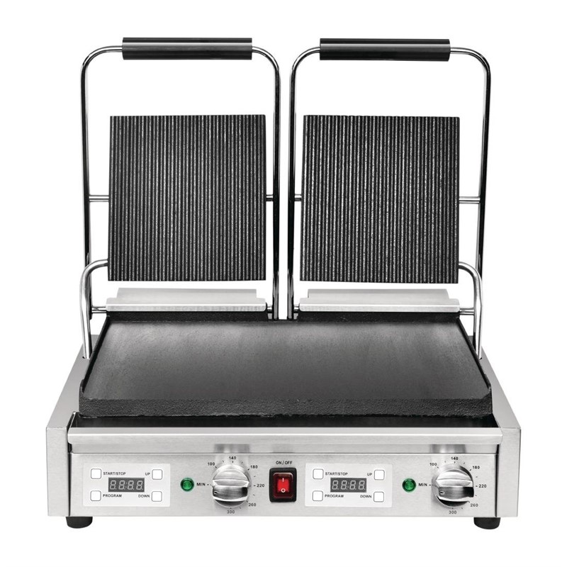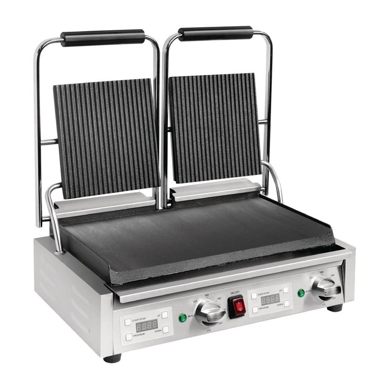 - Leistung: 2,9kW | Doppelter Grill | Gerillte obere und glatte untere Platte