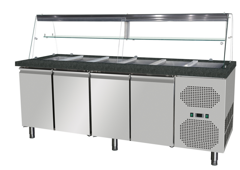 Mobile Preview: Dönertheke  223cm Salattheke 4 Türen mit schwarzen Granit