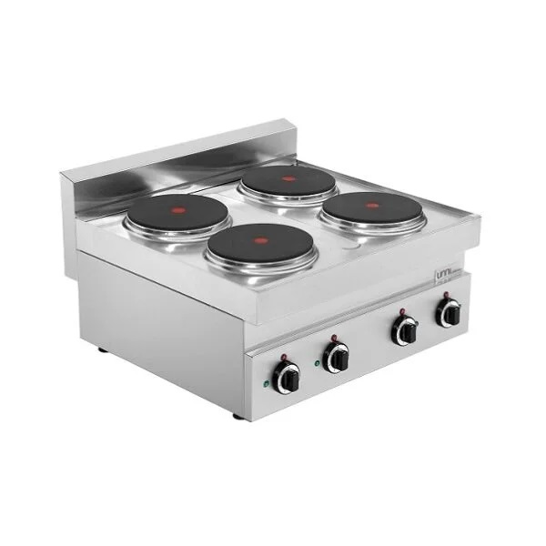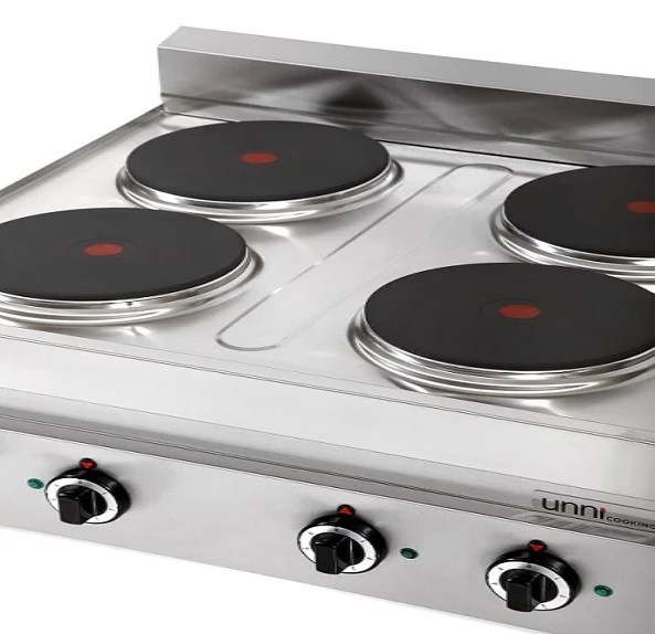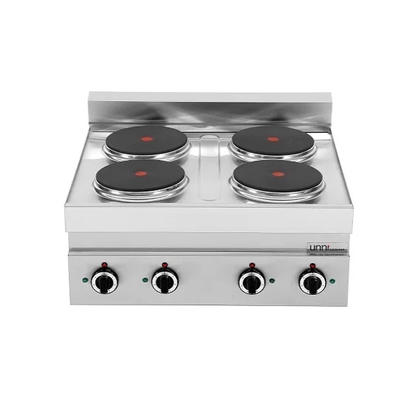 Entdecken Sie das Elektrokochfeld mit 4 Platten, hergestellt aus hochwertigem Edelstahl AISI 304 mit einer Stärke von 8/10.