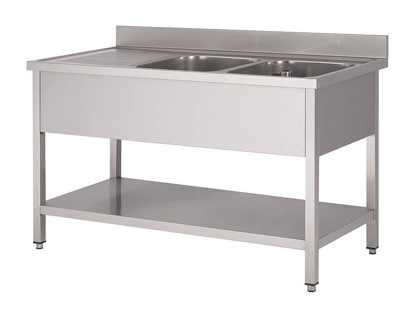 Edelstahl Spültisch mit 2 Becken, Rechts 1600x700x850 mm