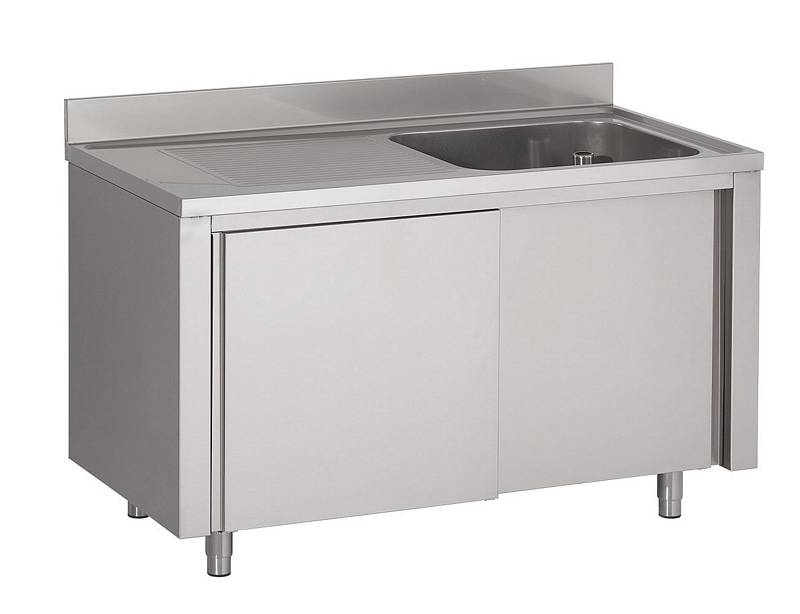 SPÜLSCHRANK MIT SCHIEBETÜREN 140x70 CM 1 BECKEN RECHTS