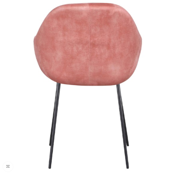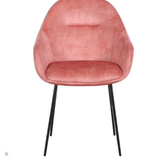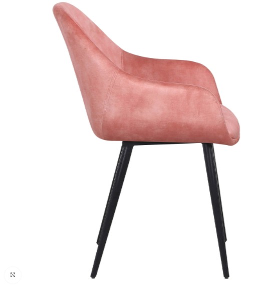 Dieser Armstuhl ist mit rosafarbenem Samt/Velours bezogen, einem luxuriösen Stoff mit weicher Struktur und eleganter Ausstrahlung. Samt wird häufig in Restaurants, Cafés und Hotels verwendet, da er Komfort und Stil vereint.