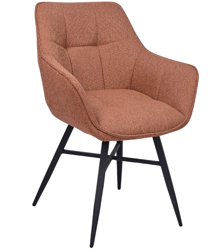 Dieser Armstuhl ist mit Rostfarbenem Stoff bezogen, einer weichen und langlebigen Polsterung, die Komfort und Eleganz verbindet. Der Stoff eignet sich ideal für Restaurants, Cafés und Hotels.