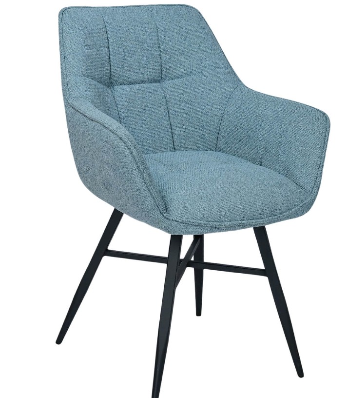 Dieser Armstuhl ist mit Türkisblaufarbenem Stoff bezogen, einer weichen und langlebigen Polsterung, die Komfort und Eleganz verbindet. Der Stoff eignet sich ideal für Restaurants, Cafés und Hotels.