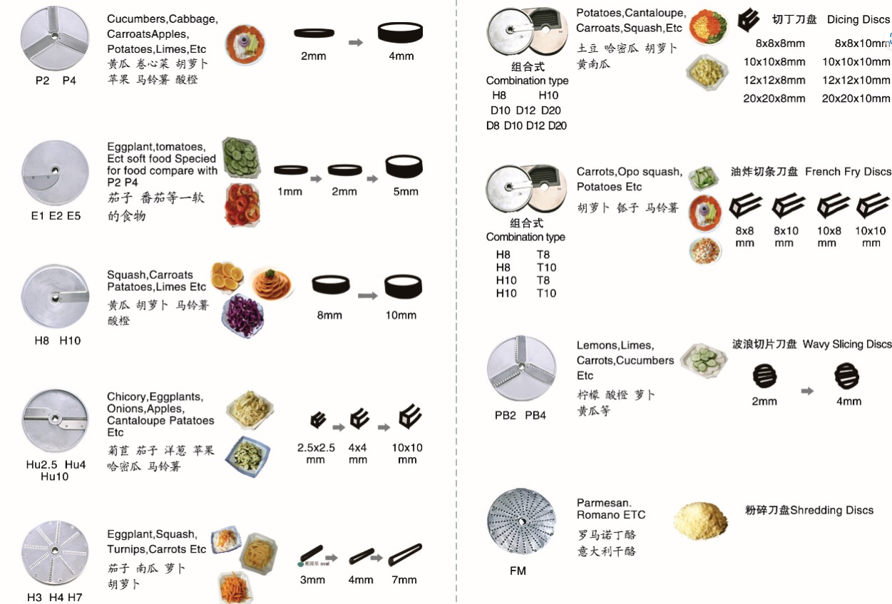 - Scheiben bei Lieferung enthalten: P2, P4 (Schneidescheibe), H3, H4, H7 (Reibescheibe), THVCAS(Auswurfscheibe)