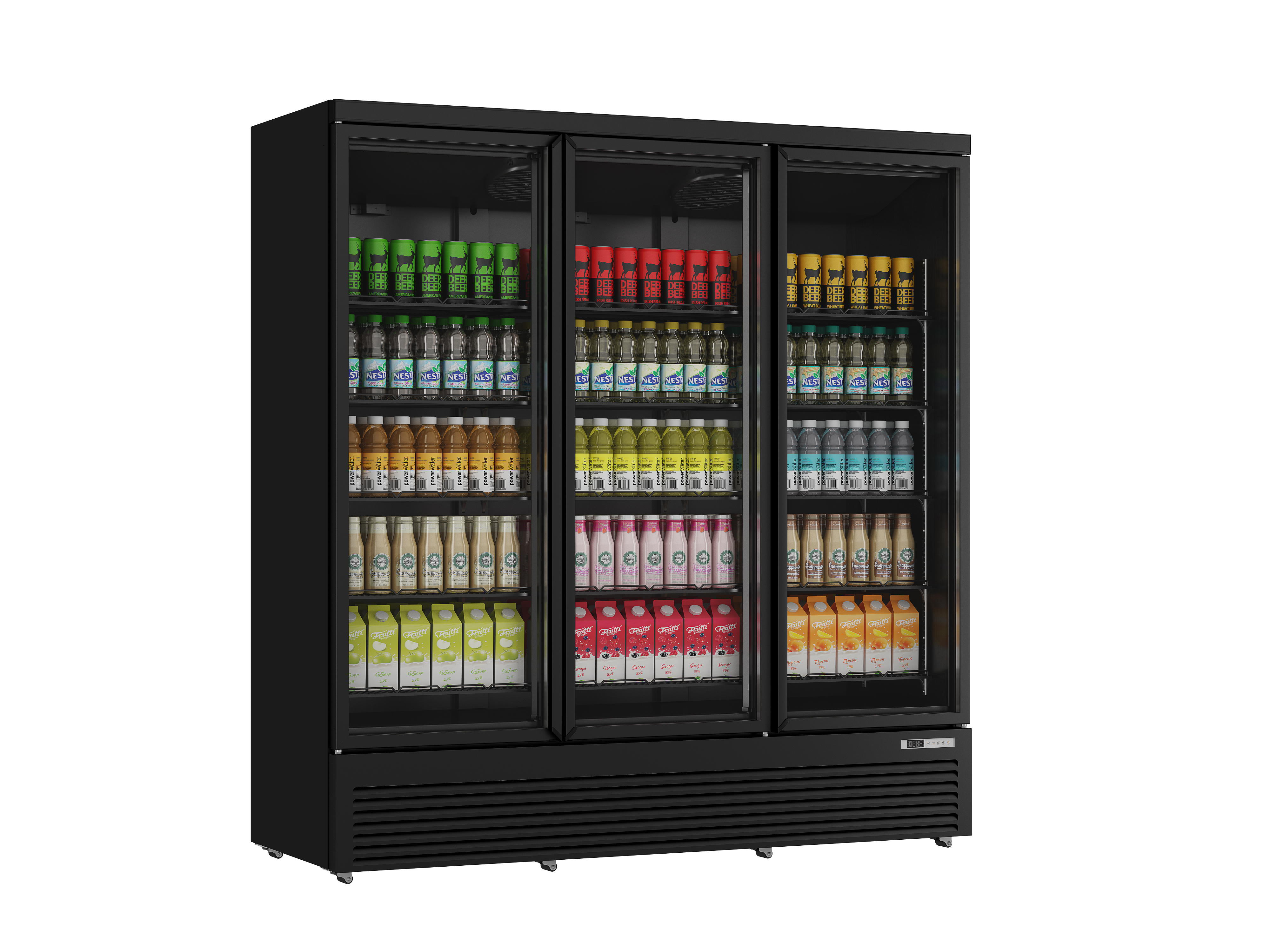 Die große Glasfläche in den Drehtüren und die (separat schaltbare) interne LED-Beleuchtung sorgen dafür, dass der Inhalt immer gut sichtbar ist, während die selbstschließenden Türen das Gerät auch sehr gut für die Selbstbedienung geeignet machen.