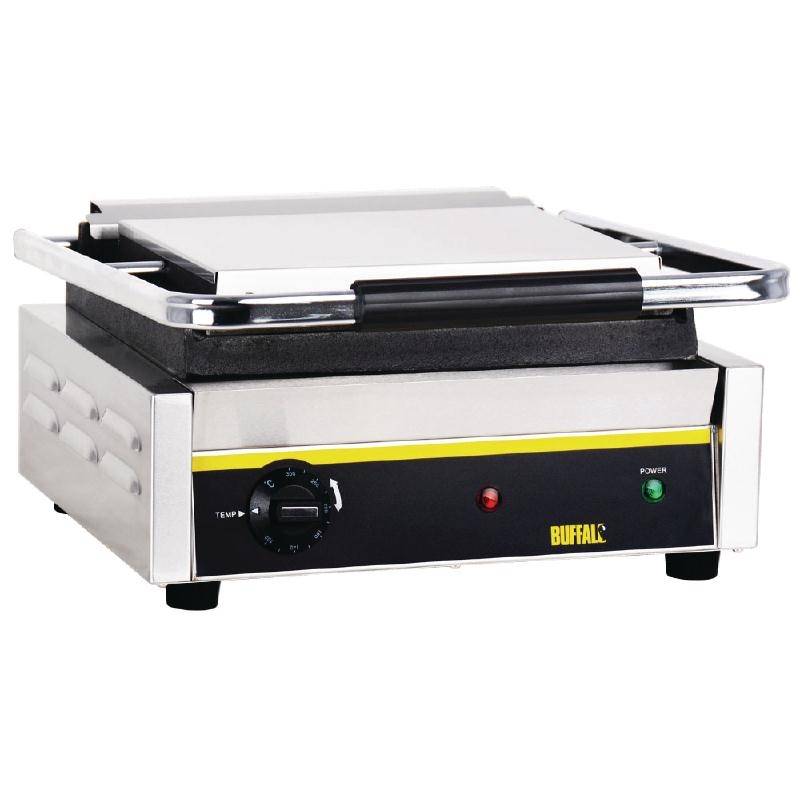 Dieser preiswerte Kontaktgrill von Buffalo kombiniert ein strapazierfähiges Edelstahlgehäuse mit glatten Gusseisenplatten für langfristige Nutzung und gesünderes Grillen. Mit anpassbarem Drehgelenk und einstellbarem Temperaturdrehknopf für unterschiedliche Dicken und Temperaturen haben Sie die vollständige Kontrolle über dem gesamten Grillvorgang. Geliefert mit einer herausnehmbaren Fettauffangschale und Grillschaber zur einfachen Reinigung.