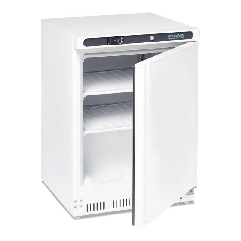 Kompakter, abschließbarer Gefrierschrank von Polar. Mit digitaler LED-Temperaturanzeige, elektronischer Steuerung und Rädern an der Rückseite für den einfachen Transport. Der Gefrierschrank ist, hat eine 60mm dicke Isolierung und die maximale Raumtemperatur liegt bei 32°C. Er ist ideal für den leichten Gebrauch für weniger anspruchsvolle professionelle Küchen, wo der Platz begrenzt ist.