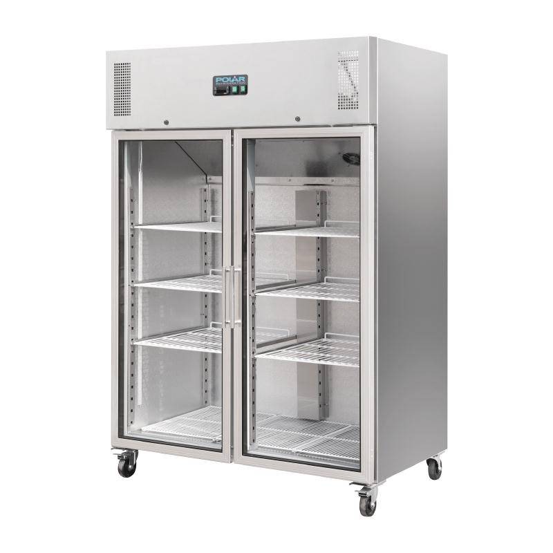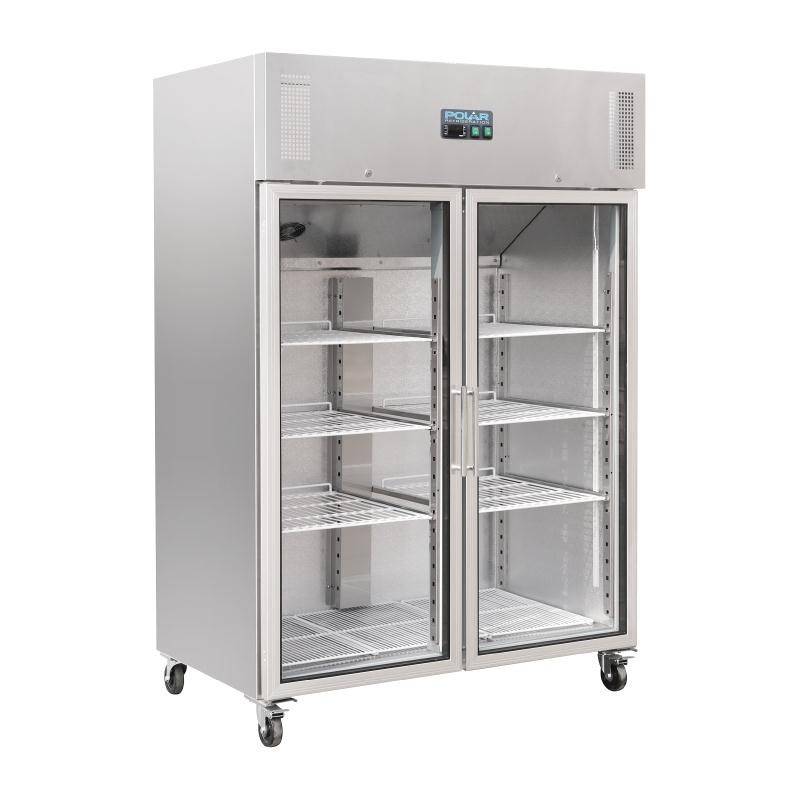Die zuverlässige und leistungsfähige Kühlvitrine mit 1200L Kapazität bietet viel Platz für die gekühlte Aufbewahrung von Lebensmitteln. Dank robustem Edelstahlgehäuse und Glastüren ist diese Vitrine sowohl stilvoll als auch einfach zu reinigen. Gleichzeitig sorgen die Umluftkühlung und die digitale Steuerung dafür, dass Ihre Produkte perfekt gekühlt werden. Durch die feststellbaren Räder ist diese Kühlvitrine trotz ihrer Größe einfach zu positionieren. Abschließbare Türen, und Platz für 20 GN 2/1 10cm tiefe Behälter.