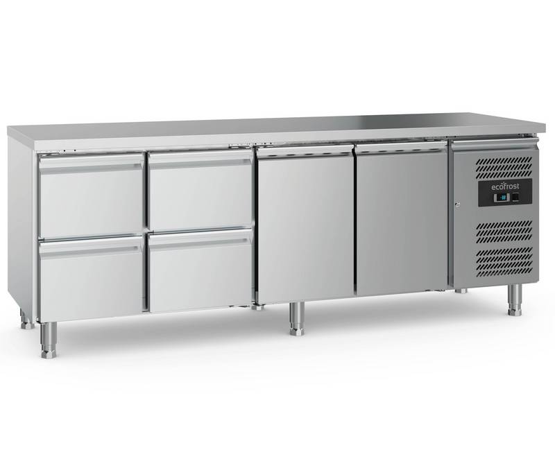 Edelstahl Kühltischen mit 4 Schubladenblock und 2 Türen 2230x700mm