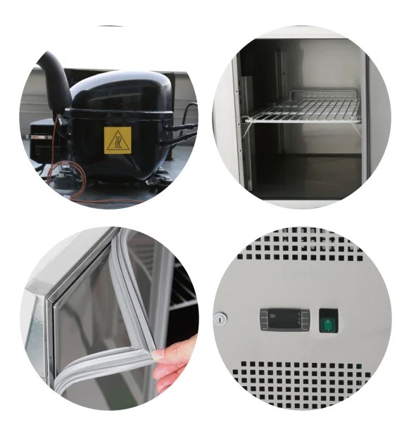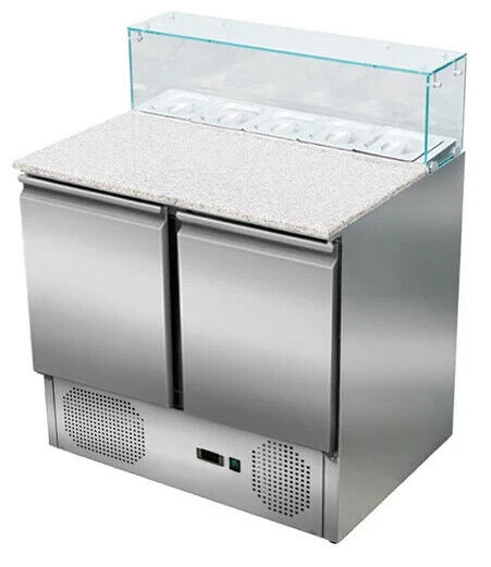 Pizzasaladette 2 Türen, eckiger Glasaufsatz, 90 cm Pizzatisch Pizzakühltisch