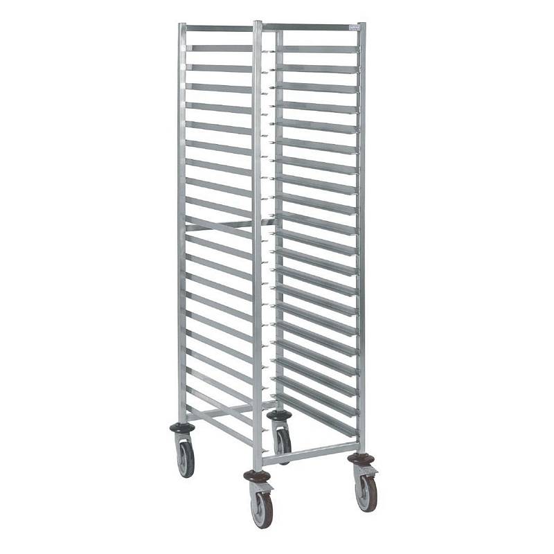 Dieser hochwertige Regalwagen aus Edelstahl von Tournus mit 20 Etagen ist für größere Gastronomie geeignet. Die Euronorm Behälter (60x40cm) passen perfekt und sicher in die Schienen. Ausgestattet mit vier Rädern mit Ringpuffern für sicheren und schnellen Transport. Dieses Modell ist teilweise klappbar um bei der Lagerung Platz zu sparen.
