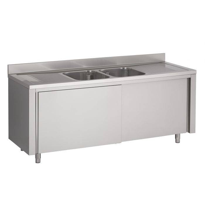 SPÜLSCHRANK MIT SCHIEBETÜREN 200x70 CM 2 BECKEN MITTE