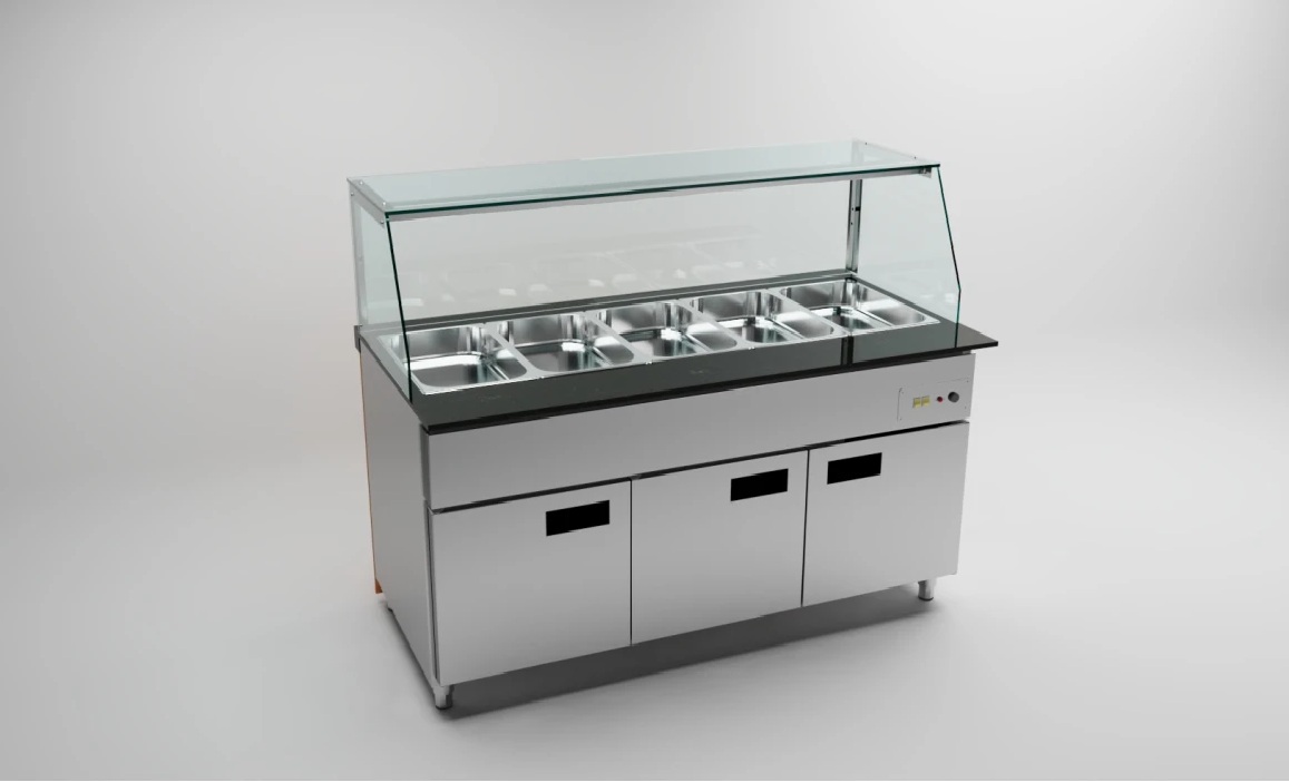 Salattheke 172 cm - Holzfront / 3 Türen / 5 x GN 1/1 Dönertheke