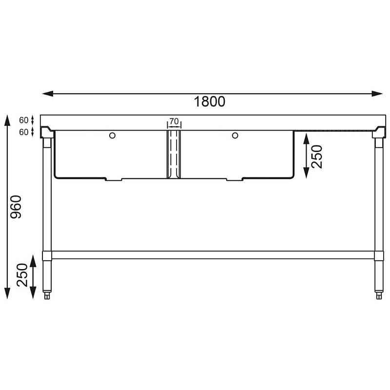 Preview: Vogue Spültisch Doppelbecken links 180cm lang