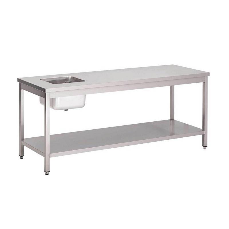 Gastro M Arbeitstisch mit Spülbecken und Regalboden 200cm lang