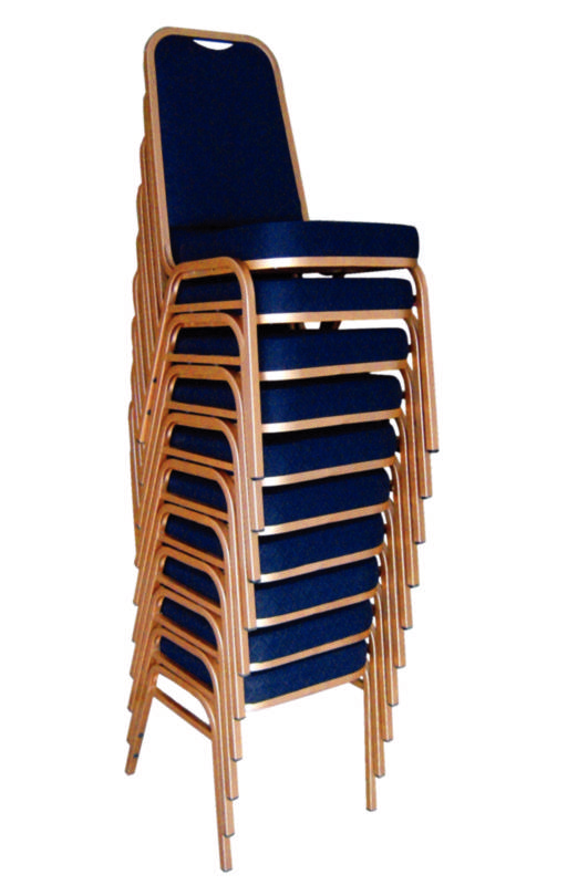 Leicht, elegant und stapelbar - diese praktischen Stühle sind ideal für vielbesuchte Veranstaltungen. Die Polsterung aus Polyester ist äußerst strapazierfähig und sorgt dafür, dass Ihre Gäste und Besucher während der gesamten Veranstaltung bequem sitzen. Die Kombination aus blauer Polsterung und goldenem Gestell schafft einen schicken, eleganten Look, der perfekt ist für Konferenzen, Kongresse oder andere formelle Anlässe.