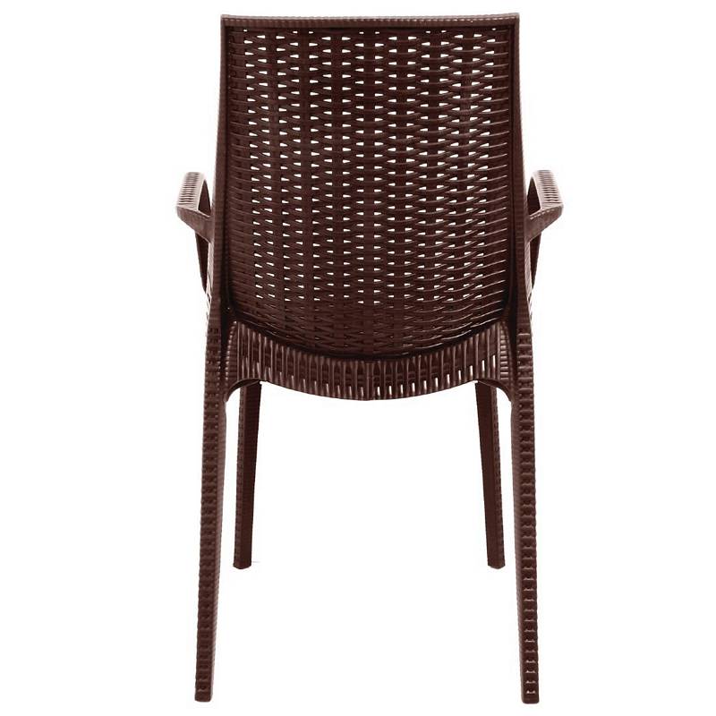 Diese soliden Stühle im Rattandesign mit Armlehnen sind stapelbar bis zu 8 Stühlen und sind sehr leicht, wodurch sie einfach zu verschieben sind. Ideal für den Innen- und Außenbereich von Restaurants, Cafés und Bistros. Diese braunen Stühle sind äußerst komfortabel und stilvoll.