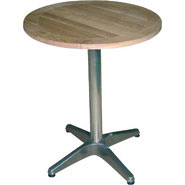 Attraktiver Holztisch mit einem stabilen, schweren Fuß. Die Tischplatte ist vorbehandelt, sollte jedoch regelmäßig und vor Gebrauch geölt werden. Bestellen Sie dafür unser Teak-Öl (DL476).