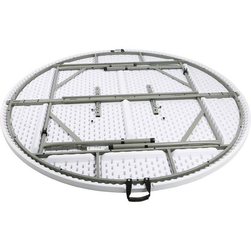 Mit diesem überaus pflegeleichten und platzsparenden runden Klapptisch mit einem Durchmesser von 182cm von Bolero sind Sie für alle Eventualitäten ausgerüstet! Der Tisch wird in der Mitte zusammengeklappt und bietet Platz für 10-12 Personen. Er ist praktisch, stabil sowie zeit- uns platzsparend und damit eine wunderbare Ergänzung der Ausrüstung jedes Caterers. Ideal für den Innen- und Außenbereich, wie zum Beispiel für Hotels, Partys, Barbecues und Empfänge. Das Gestell besteht aus puderbeschichtetem Stahl und die Tischplatte aus HDPE mit einer kristallinen Struktur, wodurch eine hohe Qualität und Langlebigkeit gewährleistet wird.