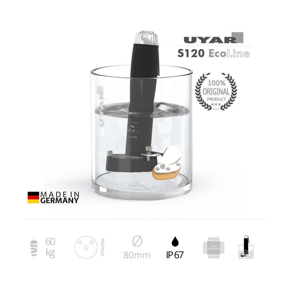 Das Original UYAR S 180 Plus PremiumLine Dönermesser/Gyrosmesser mit der einzigartigen UYAR Mikroprozessorsteuerung, klassischem geraden Griff, 80 mm Kreismesser Klinge