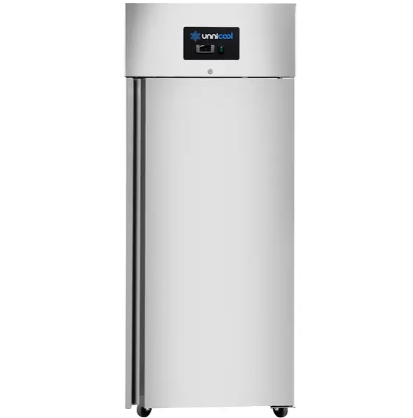 Dieser Edelstahl-Kühlschrank von Unnicool hat ein Bruttoinhalt von 700 Litern und verfügt über 3 verstellbare Einlegeböden mit den Maßen 540 x 630 mm (2/1 GN). Es verfügt über eine Zwangskühlung mit einem Temperaturbereich von -2 °C bis +8 °C und eine automatische Abtauung.