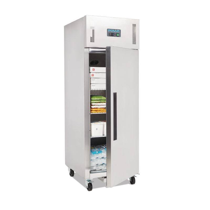 Große Nettokapazität von 376L und starkes kommerzielles Design. Dieser 1-türiger Gefrierschrank der Marke Polar, gefertigt aus Edelstahl und Aluminum, ist die ideale Ergänzung in Küchen in vielen Sektoren, einschließlich Bildung, Gesundheitspflege und im Hotel- und Gastgewerbe. Mit der leistungsstarken Umluftkühlung wird die Temperatur genau geregelt und die große Innenseite (geeignet für GN2/1-Behälter) ist leicht zu reinigen und bietet eine hygienische Lagerung.